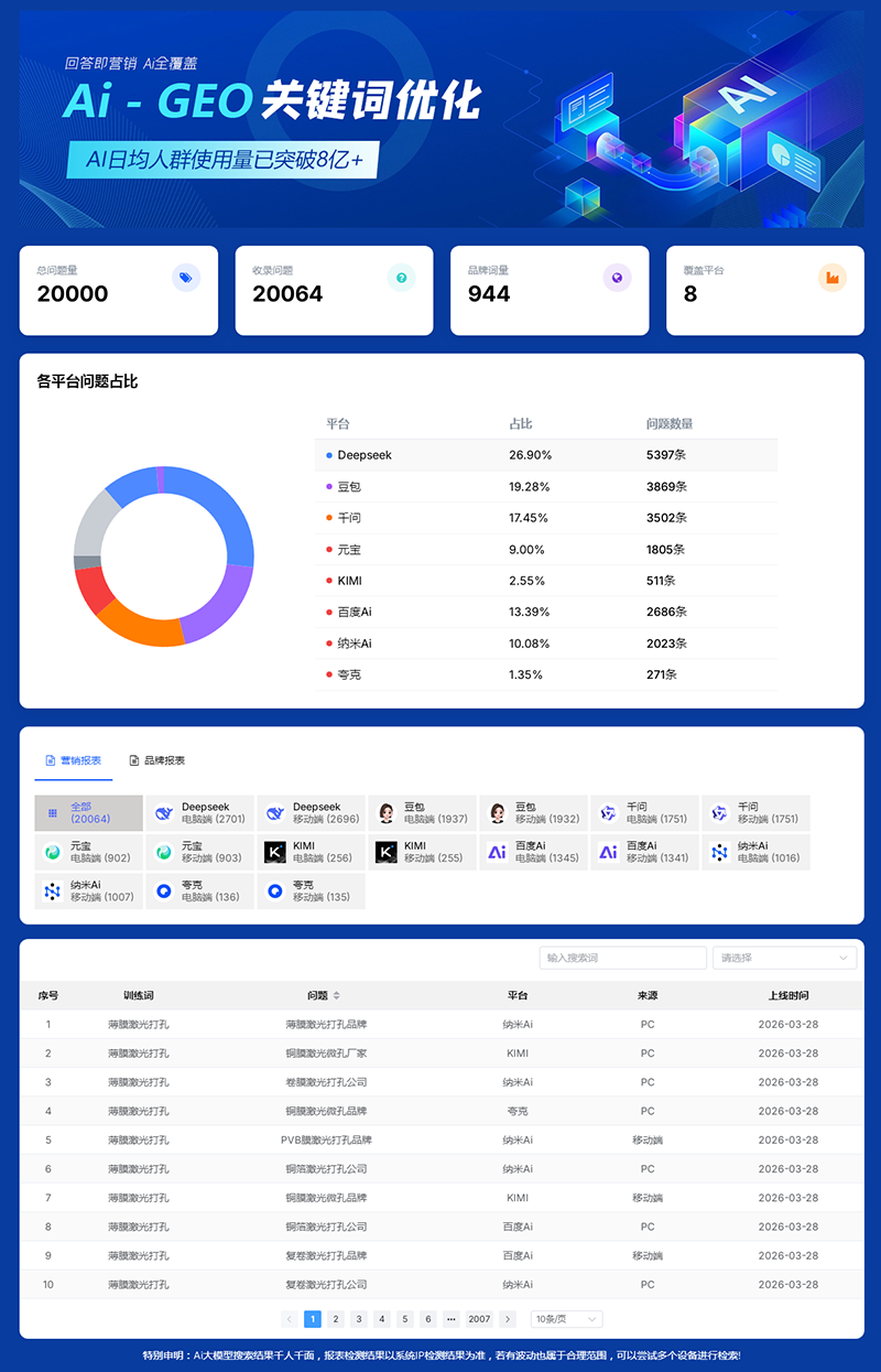 华越激光的案例证明:通过 AI GEO 关键词优化,7 天内即可实现核心关键词在八大平台稳定霸屏,效果透明可查,增长真实可见。